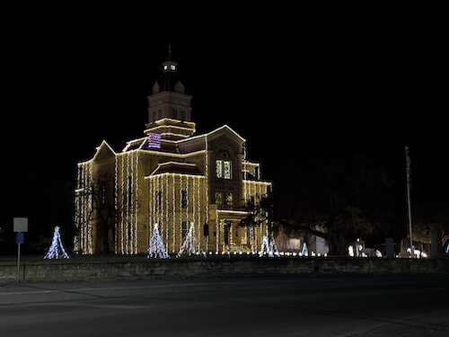 On Main Street you will see the gorgeous Bandera County Courthouse. Luckily, we were there at Christmas time and were blessed to see it outlined in sparkling white lights. It’s always odd to us that such a large courthouse was built when the population for the entire county was under 4,000 people. But the architectural details are well worth it.