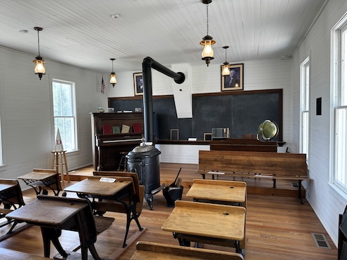 Once you are finished looking around inside the museum, head on out back to see the restored one-room Pleasant Hill schoolhouse that was moved to the property. It’s an excellent representation of the era and many volunteers and donors helped make it possible. It was built in 1887 and used until 1946, then in 2014 it was moved to the property where it now sits.