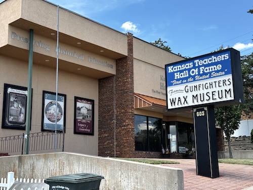 The Kansas Teachers’ Hall of Fame and Gunfighters Wax Museum is located at 603 Fifth Ave., Dodge City KS 67801.