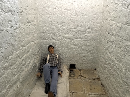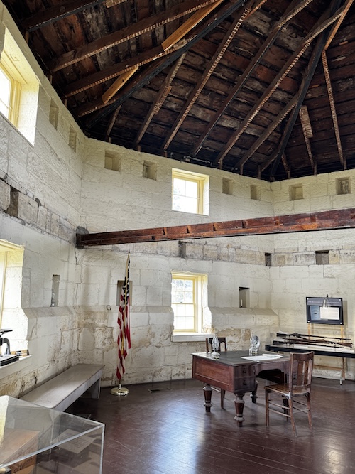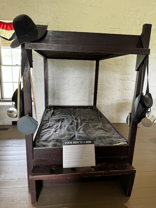The stone guardhouse is another building still standing and was built in 1872. Inside you’ll see replicas of a jail cell, the bunk areas that the enlisted soldiers slept in (four to a bed!) along with other memorabilia. Again, it felt spacious – except for the jail cell. As usual it was small and cramped, with only a small window in the door. It would have been horrible to be in there especially during the summer heat.